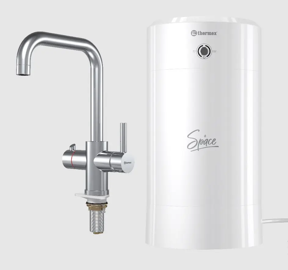 Электрический проточный водонагреватель THERMEX Space 8 – компактный и функциональный, он встраивается в систему водоснабжения и обеспечивает бесперебойный нагрев воды и как водонагреватель, и как чайник. Внутренний бак позволяет держать под рукой предварительно нагретыми до 6 литров кипятка, а встраиваемый смеситель будет отлично смотреться на любой кухне. Thermex Space – это универсальное устройство, которое выполняет функции малолитражного водонагревателя, чайника и смесителя. Подходит для мгновенного заваривания чая, варки макарон, стерилизации бутылочек и прочего, на что хватить вашей кулинарной фантазии. Один прибор выполняет сразу три функции, занимая меньше места и потребляя меньше электричества. Производит меньше шума, чем стандартный чайник, и предоставляет 6 литров готового кипятка, как термопот.